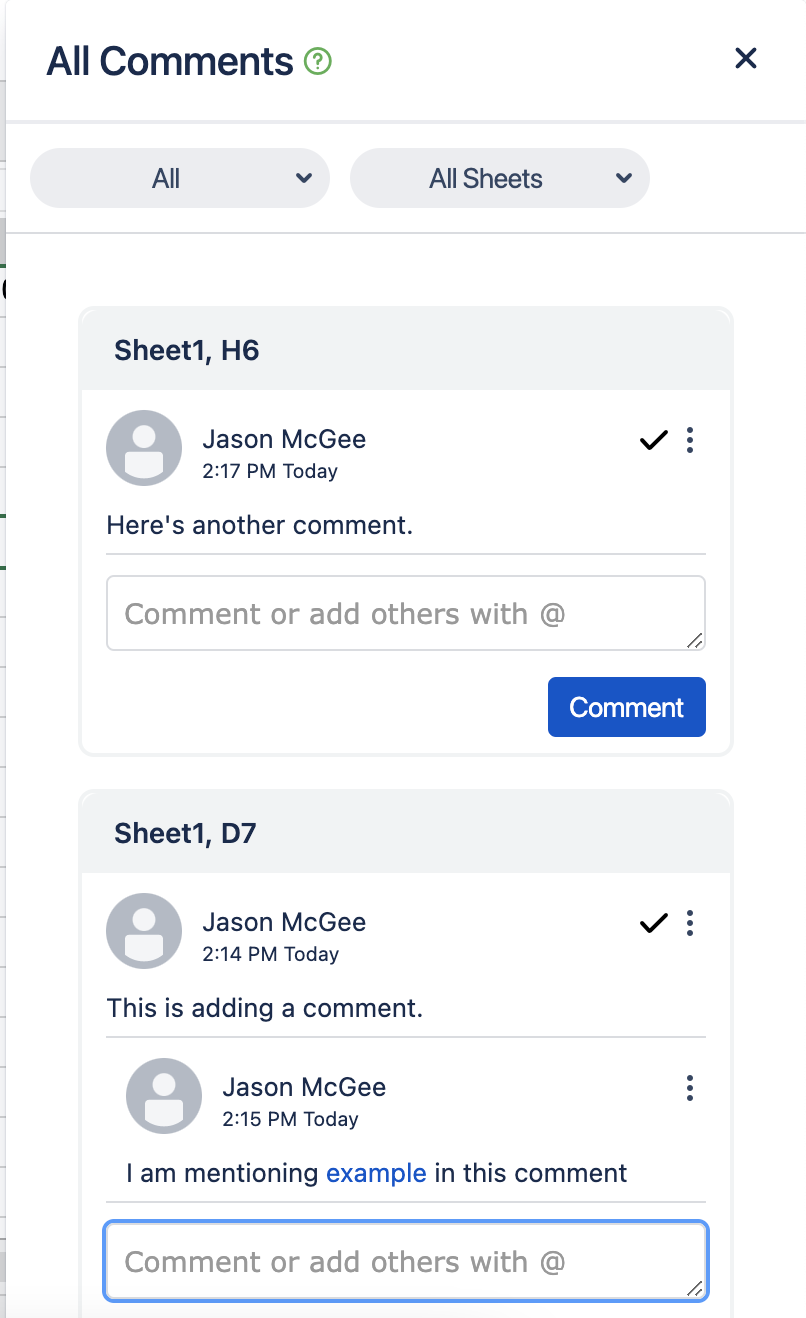 All Sheets - Shows all comments within all sheets that are in the Excellentable