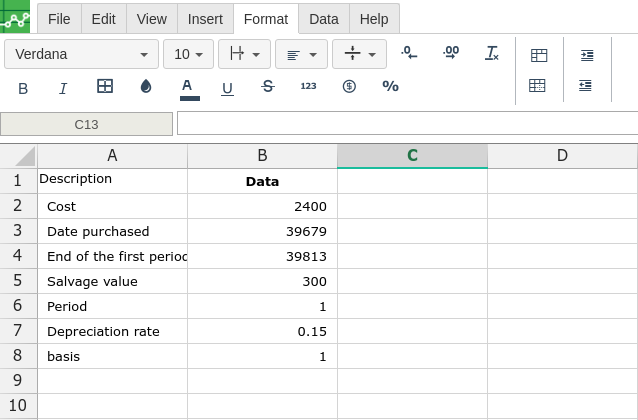 Then type in the AMORDEGRC formula in the area you would like to display the outcome: