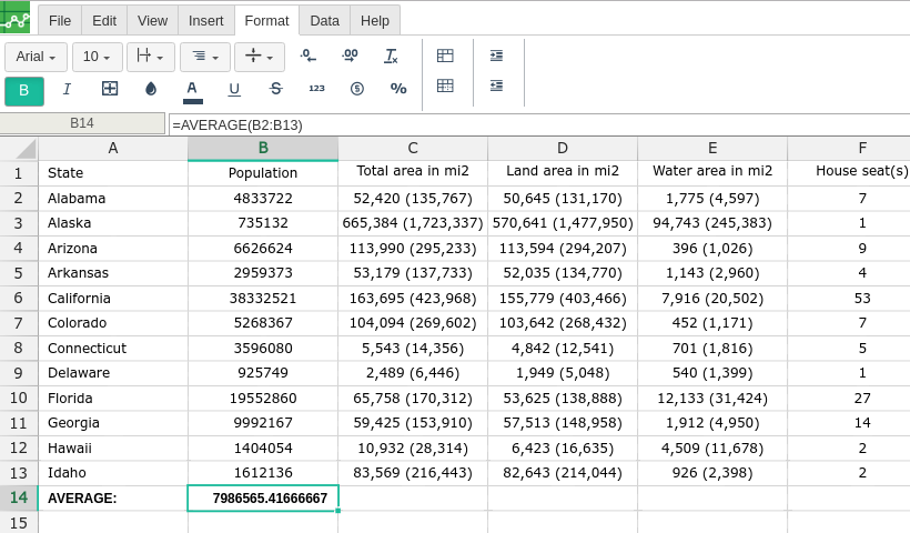 AVERAGE(value1, [value2, ...])