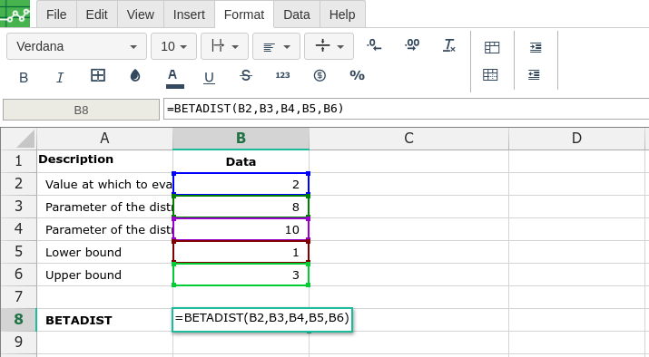 Then type in the BETADIST formula in the area you would like to display the outcome: