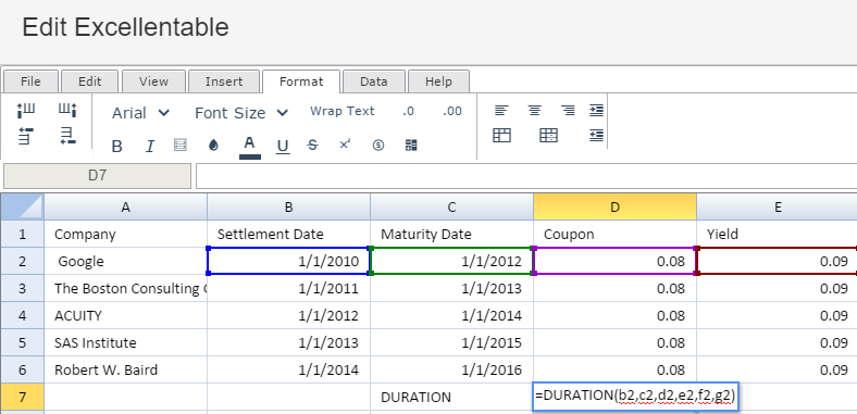 To use the DURATION Formula, simply begin with your edited Excellentable: