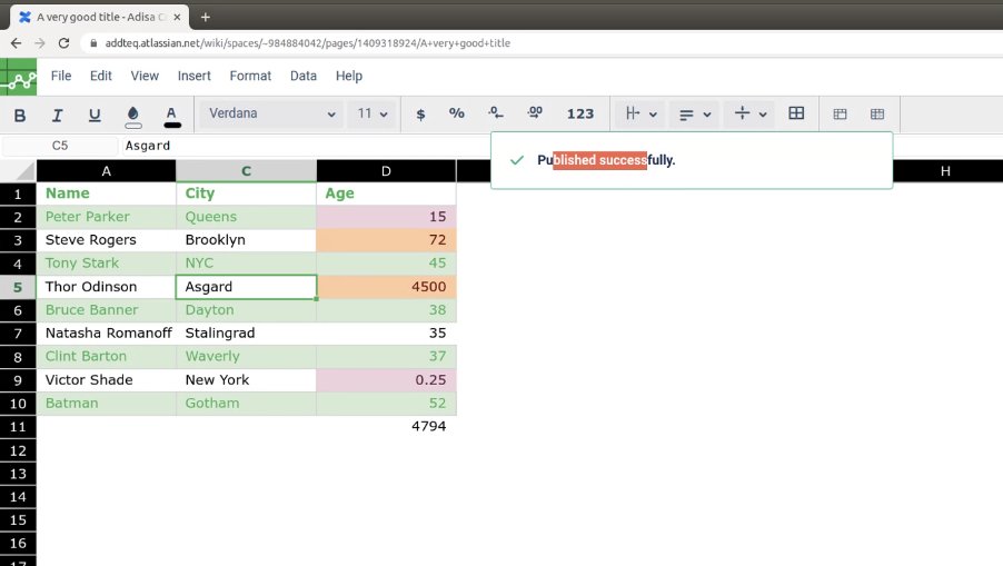 Expected: The spreadsheet in the PDF export should reflect same as in Confluence.