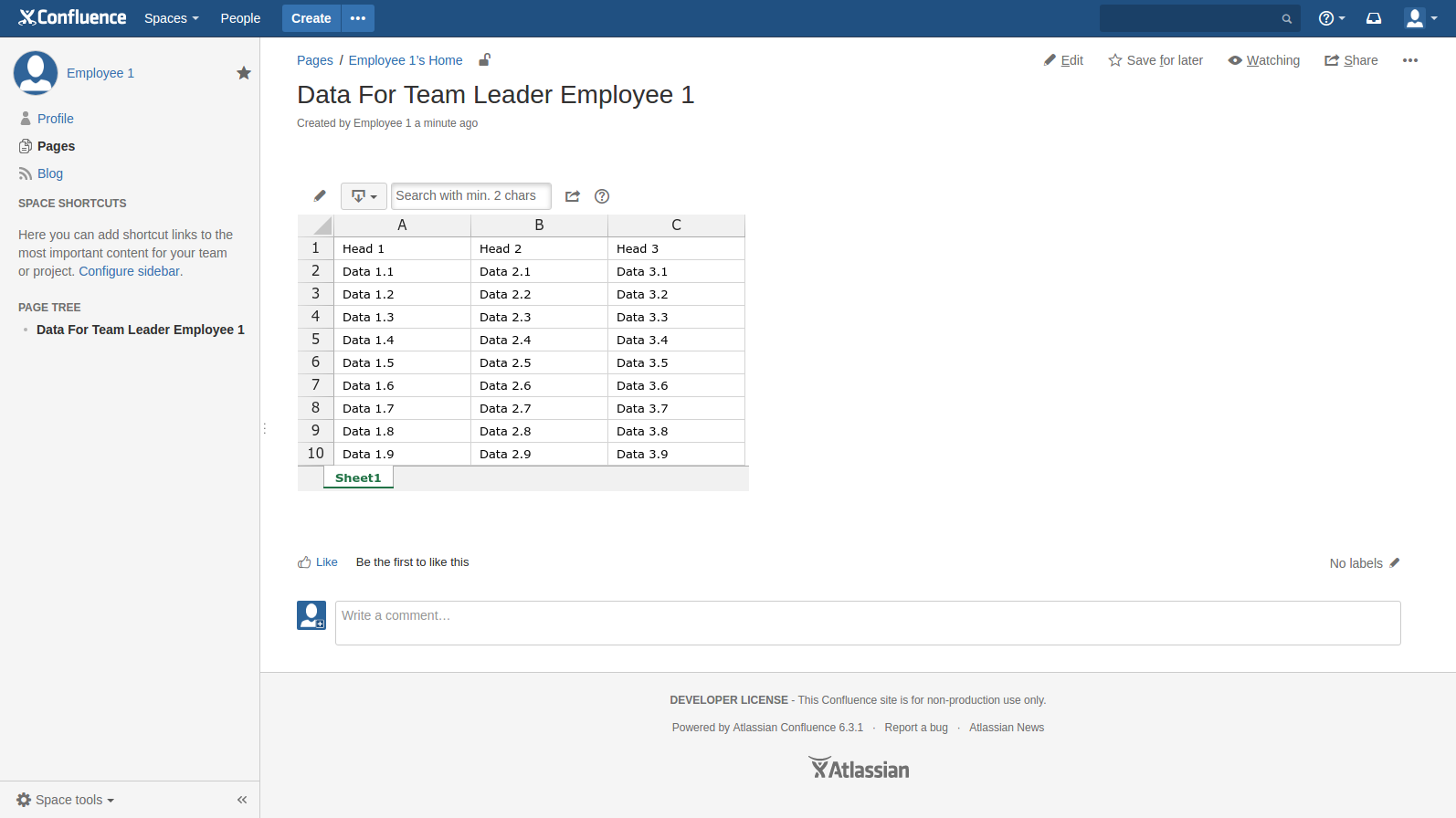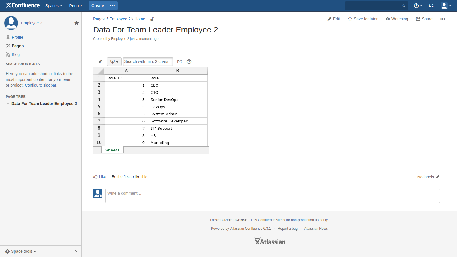 - Similarly, include Employee 3's page with the "Page Include macro". Please note that Employee 1 should have view permissions on the Employee 3's page.