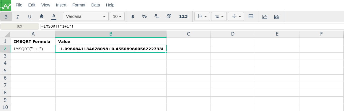 Then type in the IMSQRT formula in the area you would like to display the outcome: