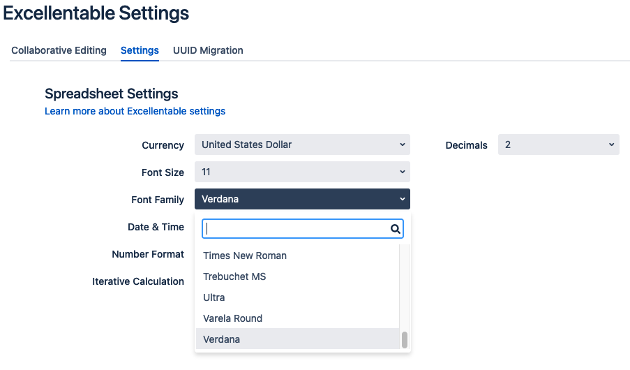 Setting the Font Family at the Instance Level sets the default Font Family used for all Excellentables under this Instance. The Font Family selected will change what Font is used to the selected way within the Excellentable.