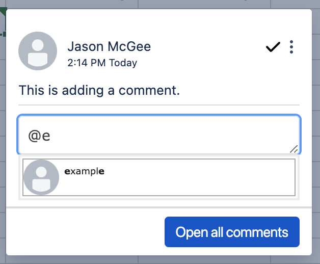 When adding, editing, or replying to a comment, you have the ability to mention someone in it.