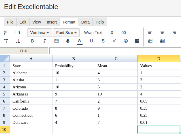 Excellentable will generate the outcome when hitting enter.