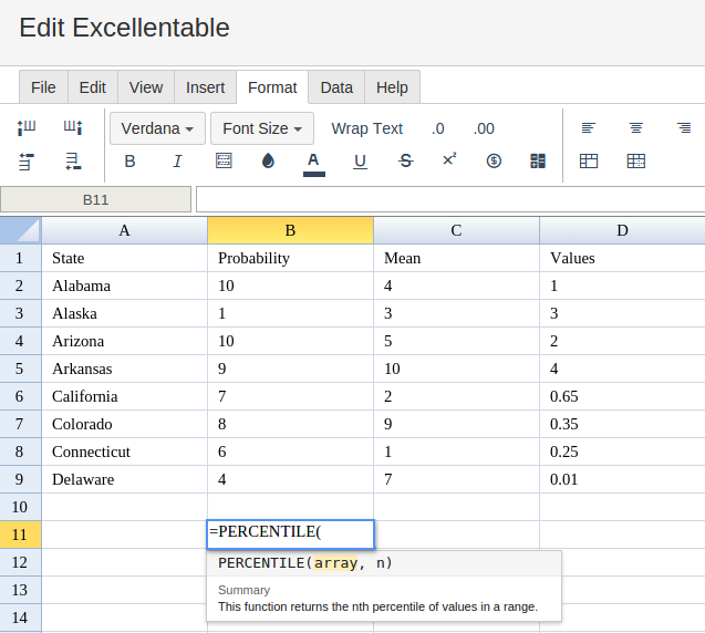 In order to use the PERCENTILE formula, start with your edited Excellentable