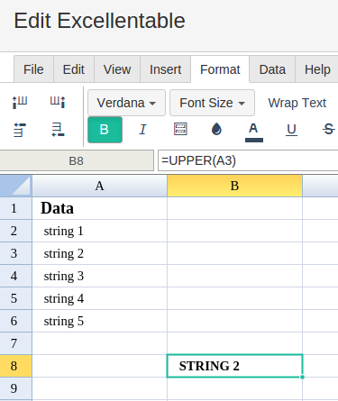 In order to use the UPPER formula, start with your edited Excellentable: